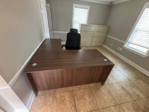 A previous customer reached out to our sales team for their recent expansion. Since the new offices were relatively small, they engaged our professionals to ensure correct furniture sizing and layout. Our team took measurements and created 2D and 3D layouts, successfully fitting L-shaped desks in every office desired. They also chose the new Java finish for their conference room. This choice effectively complemented the darker tones in their flooring, creating a sophisticated executive look.